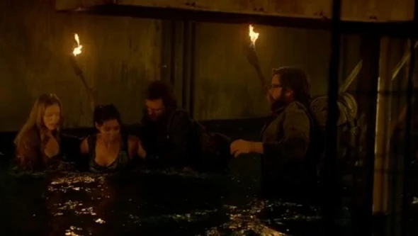 De repente, Miles alucina que ve un explorador de la milicia. Nadie entiende porqué vio eso. Descendiendo más en los túneles, el grupo debe meterse en una sala inundada, con el agua a la cintura. Al cruzar Nora alucina que es atacada por un cocodrilo. Aaron deduce que están siendo afectados por la falta de oxígeno, y que eso les está provocando delirios. Comienzan a apresurarse y encuentran la salida, pero ha sido bloqueada con ladrillos. Más adelante Miles delira con que está en la oficina de Monroe, que le dice que como en realidad sólo está en su cabeza, él sabe su peor secreto: que tiene miedo de traicionar a sus amigos para volver a la Milicia. Charlie saca a Miles de su ensueño.